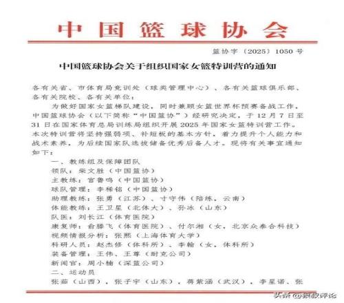 北京时间12月4日,根据媒体人“我爱女篮”的报道,中国篮球协会将于12月7日至31日组织国家女篮特训营,本次特训营将坚持强弱项、补短板的基本方针,着力提升个人能力和战术素养,为后续国家队选拔储备优秀后备人才。