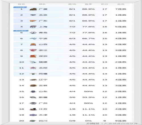 经过一夜激战,CBA最近积分榜再次发生变化,具体如下。